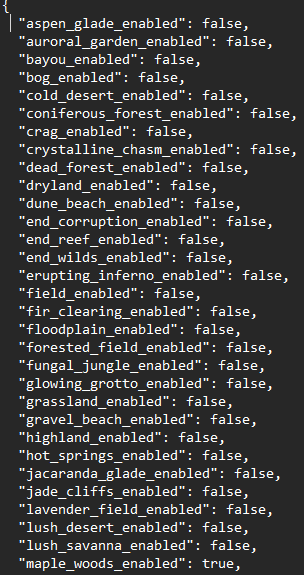 hi! perhaps i am a bit confused. on 1.21.1 how do i disable biomes? i only really want a small handful of the biomes but when indisabled some in configs they still spawn by Elamakesmetingle Minecraft Minecraft Java Edition Modded Minecraft