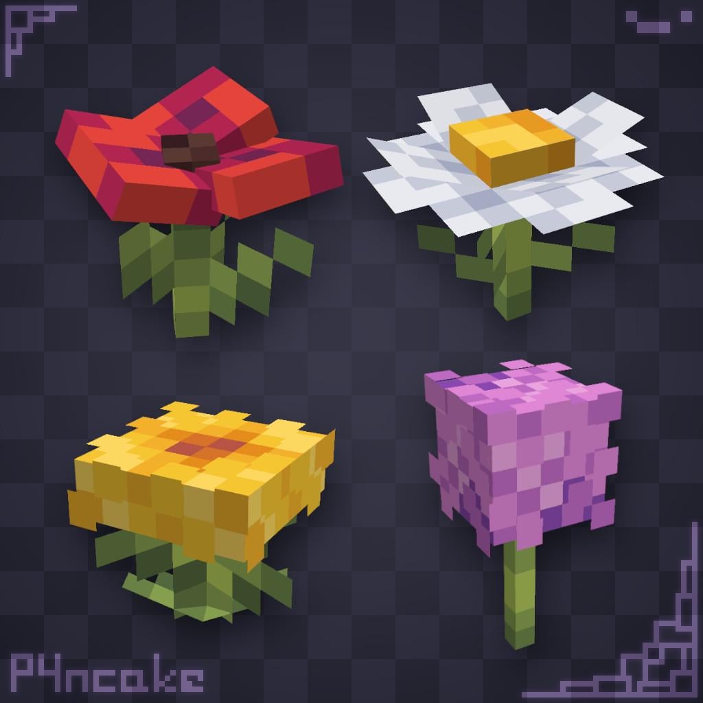 Poppy, Oxeye daisy, Dandelion and Allium 3d designs for my pack Allure. They were inspired by the flowers in the bedrock Minecraft movie event! by Darq10 Minecraft