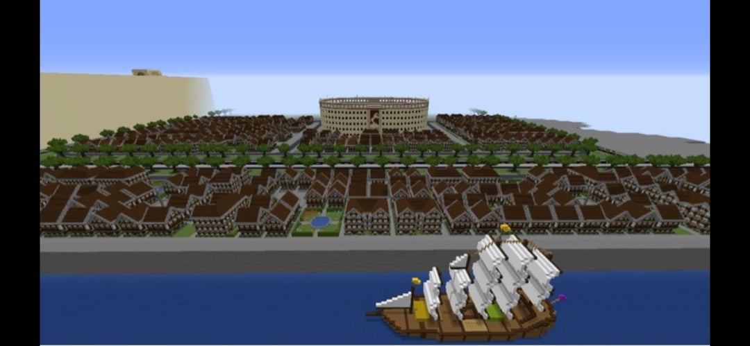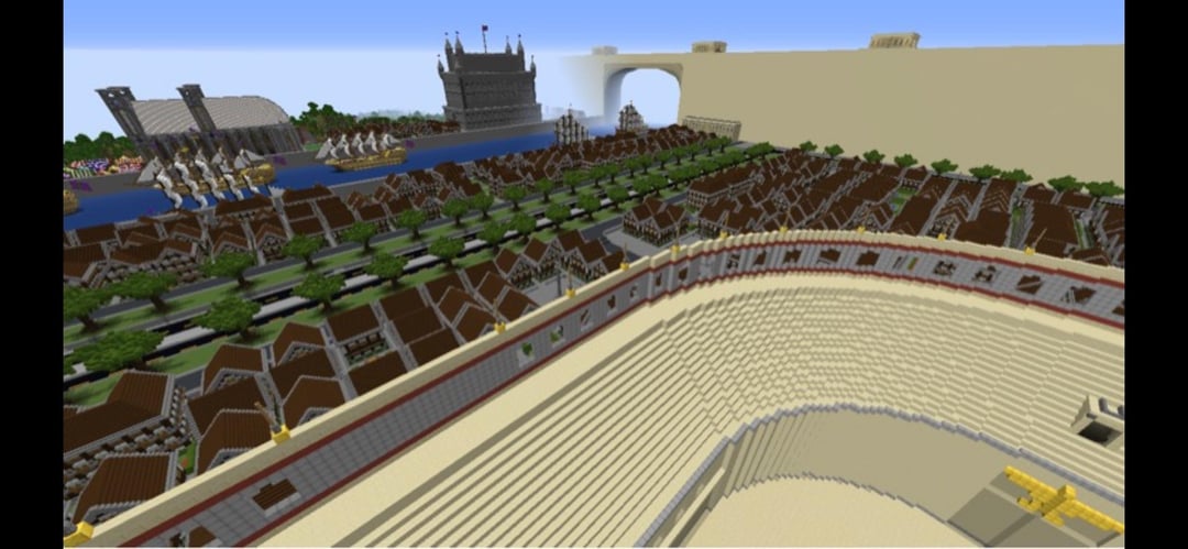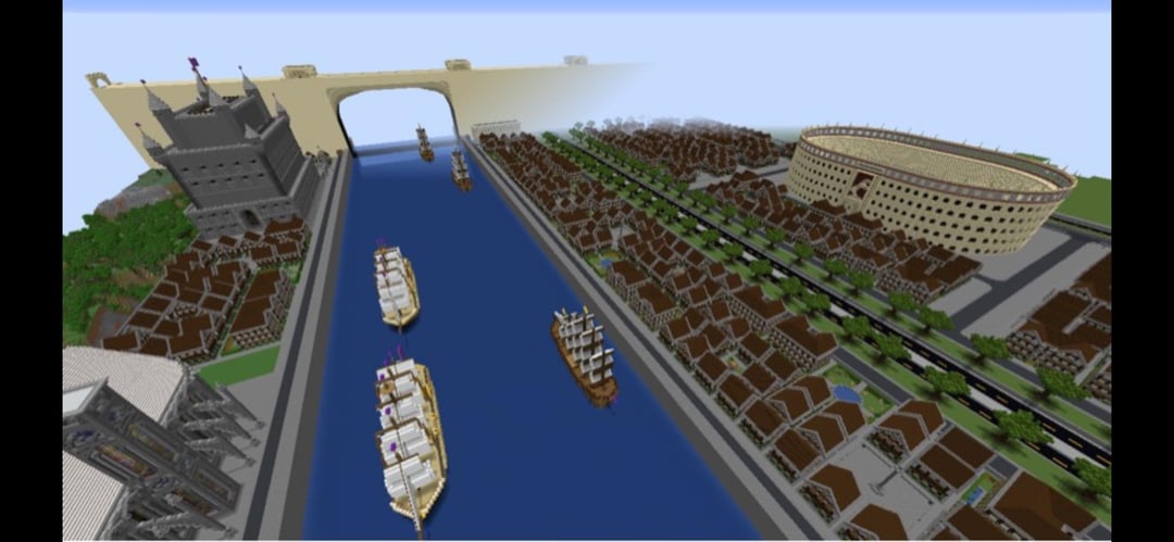 I built this area of my city in Minecraft around 2020-2022 it has a canal bisecting the city that is 100 blocks wide. And I was watching avatar the last air bender at the time, so built those walls inspire by Ba Sing Se. there’s some sailing vessels there, a fort, and an elongated colosseum. After that I started building a 9 hole disc golf park, and had plans to build some stadiums. I also have a list of builds I’m adding soon, like a movie theater and bowling or tennis court. And other smaller areas for entertainment builds, the rest of the city is fairly modern and has a lot of skyscrapers, so this area is actually kind of refreshing from that perspective. But all the houses start to blend in, so I was thinking of adding a modern housing development nearby in place of some of the homes there. What do ya think?