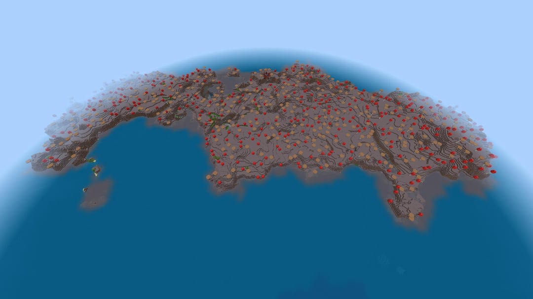 While exploring a random Bedrock world, I stumbled upon what I thought was a regular mushroom island — but it’s actually over 1000 blocks long, like a mushroom continent!