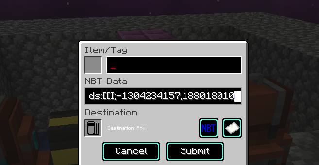 I am playing Cisco's Medieval RPG Dragonfyre and i decided to make a mob farm to get apotheotic items. i tried to use atm9 and atm10 nbt data's but they were'nt working. I tried to download an nbt data showing mod but the line was so long it wouldn't show all of it. There is Apathoetic Additions mod which i think is the cause of the atm9 nbt not working.I tried to just put an item in and delete the unnecessary parts but when i just leave the line that i need, it just doesn't accept it and stays red. Does anybody know any other way to do this?