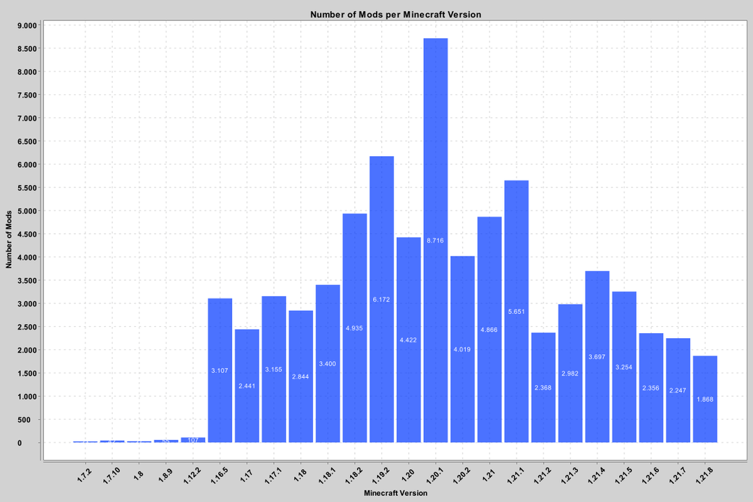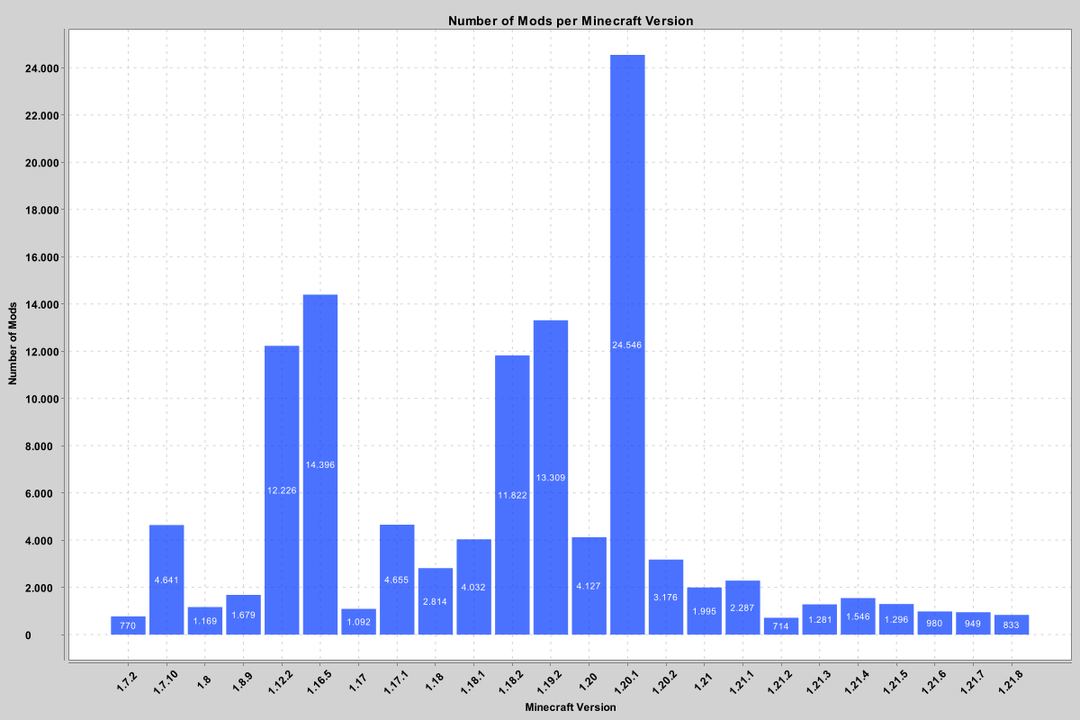 Curious what the numbers would look like if all the “I added 2 foods and a 9000 damage sword with MCreator” and now AI slop mods were removed from the list. No easy way to do that though.