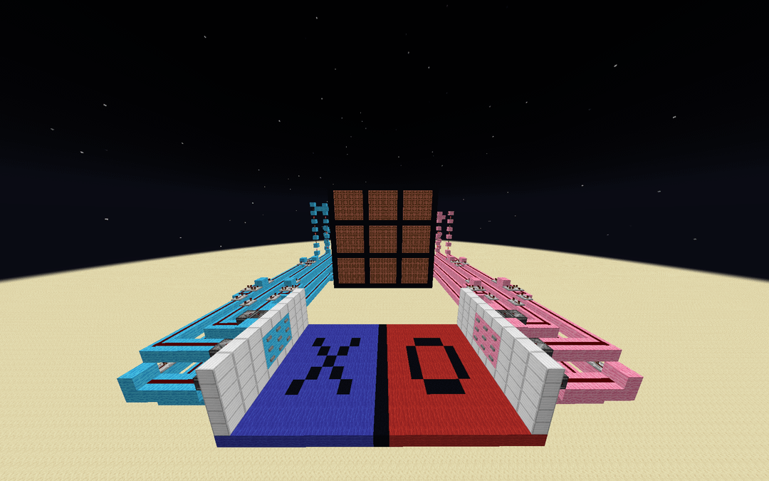 Spent a few hours making Tic Tac Toe, and I'm pretty proud of it. No reset button or win detection, but each space is toggleable by buttons so it can be reset by pressing each one again. World download here by MnMan3000 Minecraft Minecraft Redstone Redstone