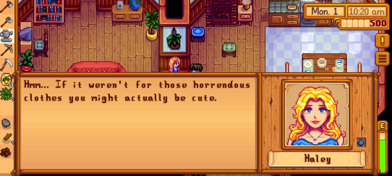 However, your relationships progress with the townsfolk (that blue circle next to Haley’s picture in your screenshot is the status of your relationship. Blue is the lowest level). The personalities of the townsfolk will change over time depending on how much you interact with them.