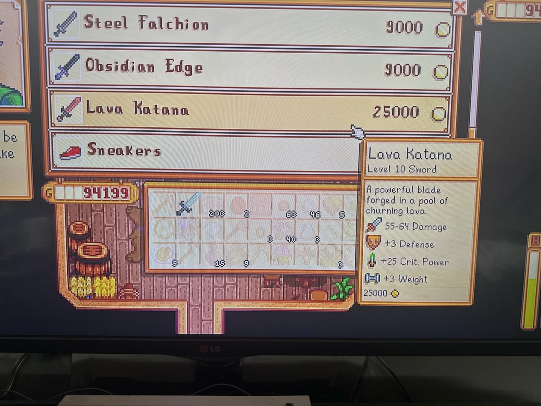 Should I buy the lava katana or is there something better somewhere else? Iām currently in summer year 2 and have access to the skull cavern. My current weapon is the dark sword (see image 2).