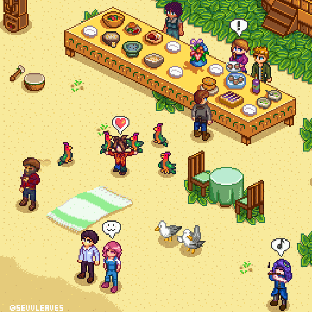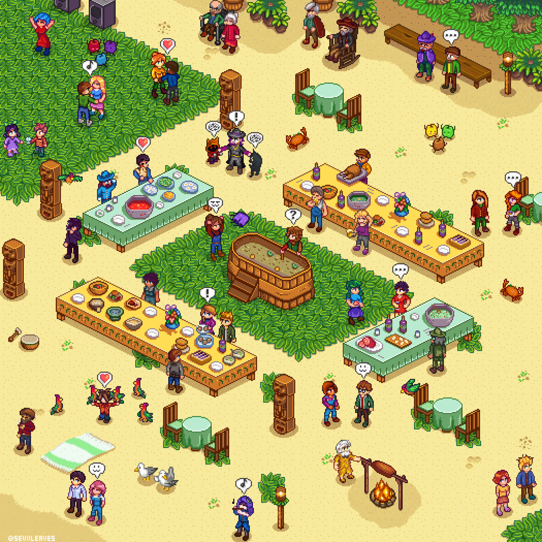 Hello again! I wanted to thank everyone for the comments on my last post, so I felt like I had to share another one today xD. This is the Luau in an isometric perspective…and as usual, I added some Stardew Valley Expanded characters by sevvleaves Stardew Valley