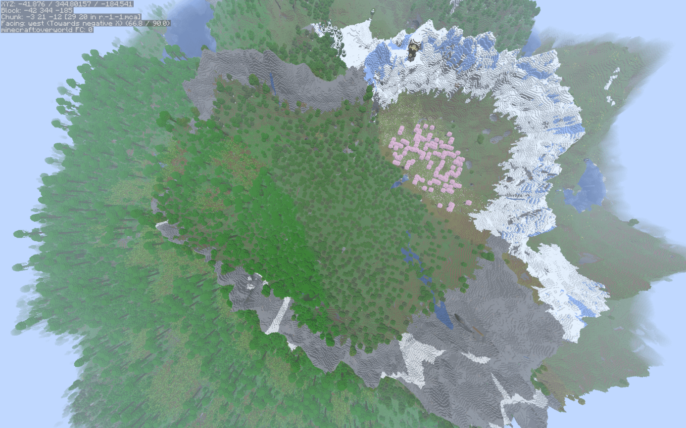 Plains, Sunflower Plains, Cherry Grove, Savanna Plateau, Forest, Jungle, Sparse Jungle, Bamboo Jungle, Snowy Slopes, Frozen Peaks, Stony Peaks by estradying Minecraft Minecraft Seeds