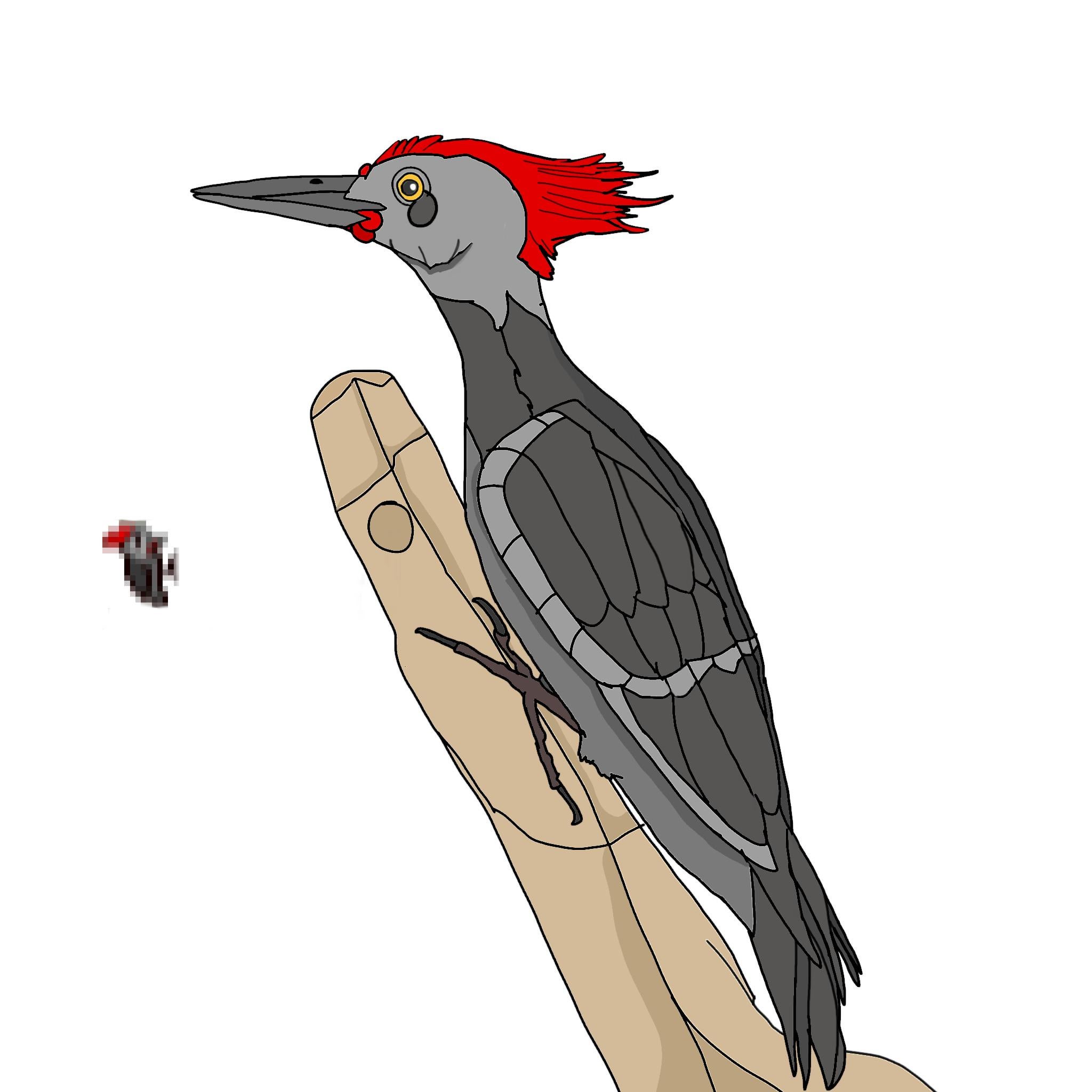 Linus smiled and said that was his favorite species, the black ivory-billed woodpecker. He mentioned that it was a species that inhabited the lowlands throughout the region and that it had evolved its beak to wedge and peel away the thick bark of old or dead trees to expose the tunnels of the larvae, feeding mainly on the larvae of moths, beetles, and other insects; according to my colleague, no other species present in its distribution area is capable of eliminating The bark of the trees adheres strongly, so it faces no real competition in hunting these larvae, which has led it to reach that particularly large size, thanks to the abundance of resources and zero competition.
