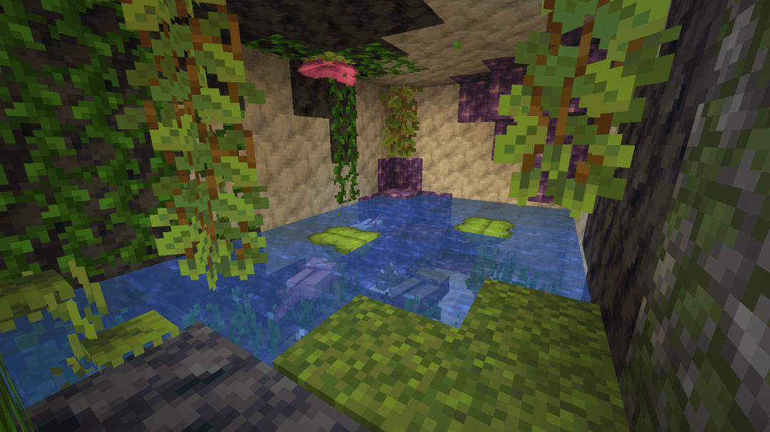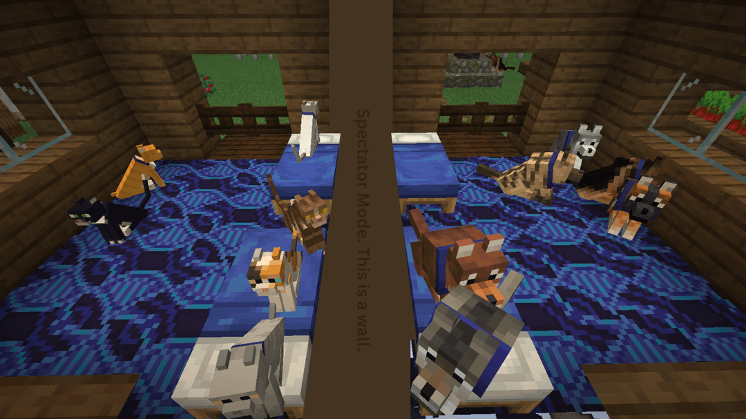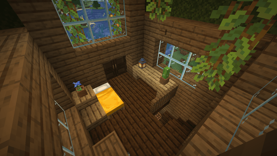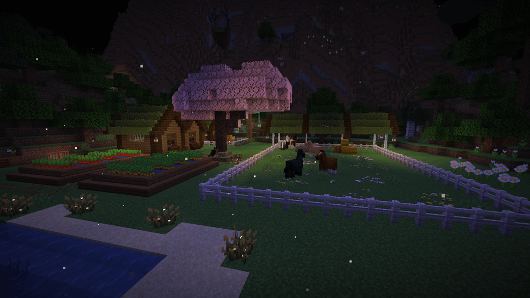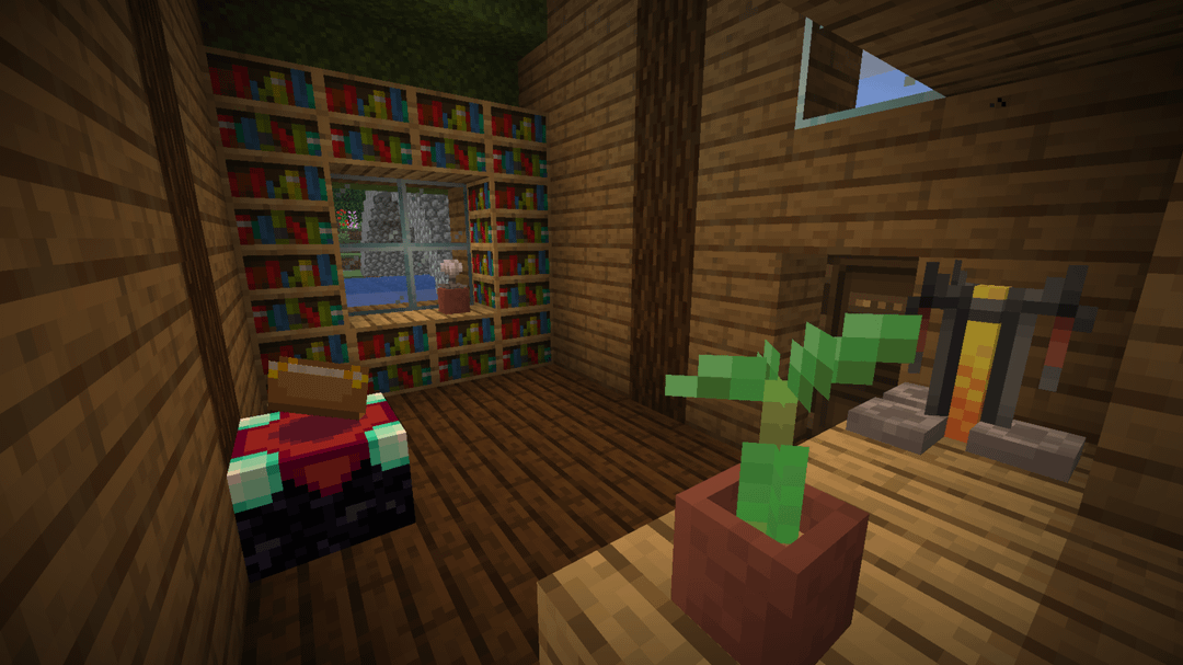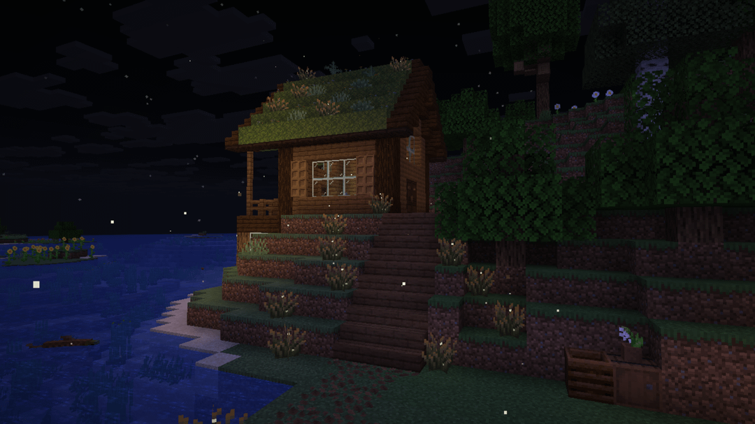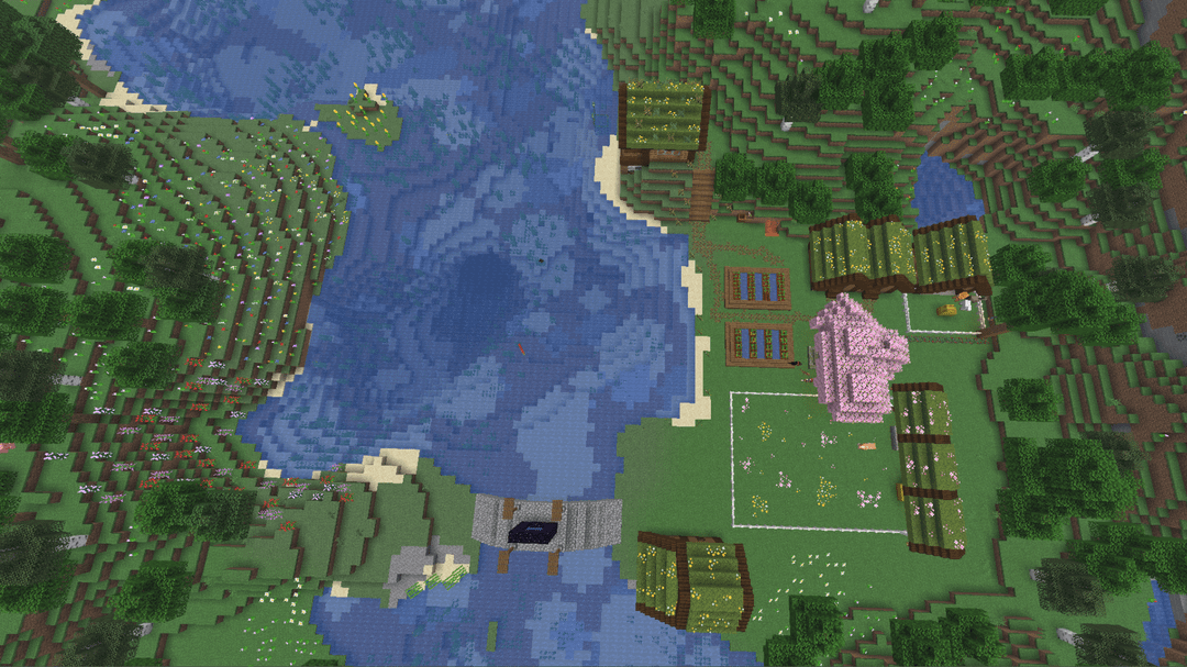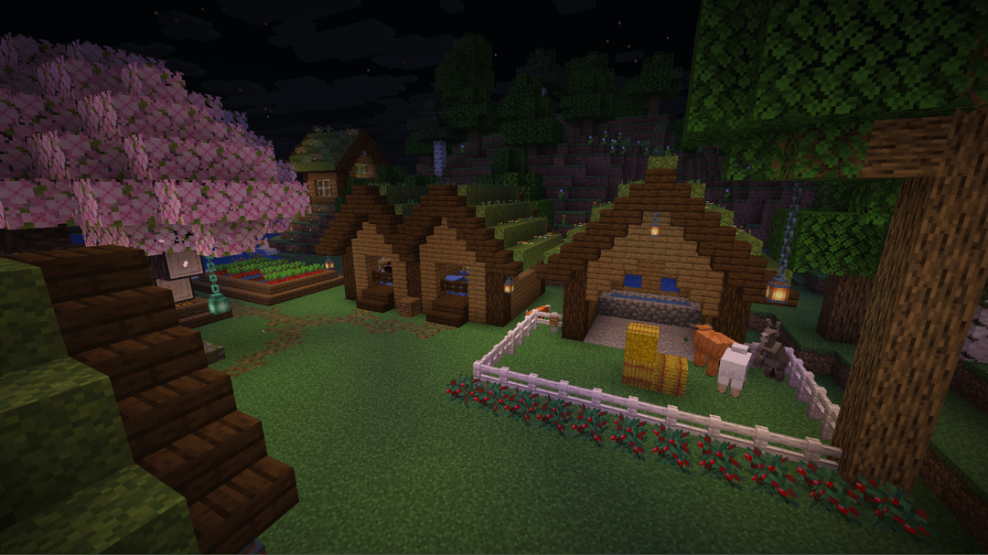 Updates on the Mossy Homestead that I posted here last month. While I've gone through a few iterations and tested a lot of different details, I'm really happy with how it has turned out. I trial-and-errored my way through lots of wood combos until settling on spruce + dark oak, and I collected a bunch-oh-moss to reroof everything.