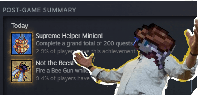 They should call this achievement the a short hike because holy beans this took a while to get. Ive been playing for years but never sat down and actually grinded for it! Very satisfying! by Dragons_tired Terraria