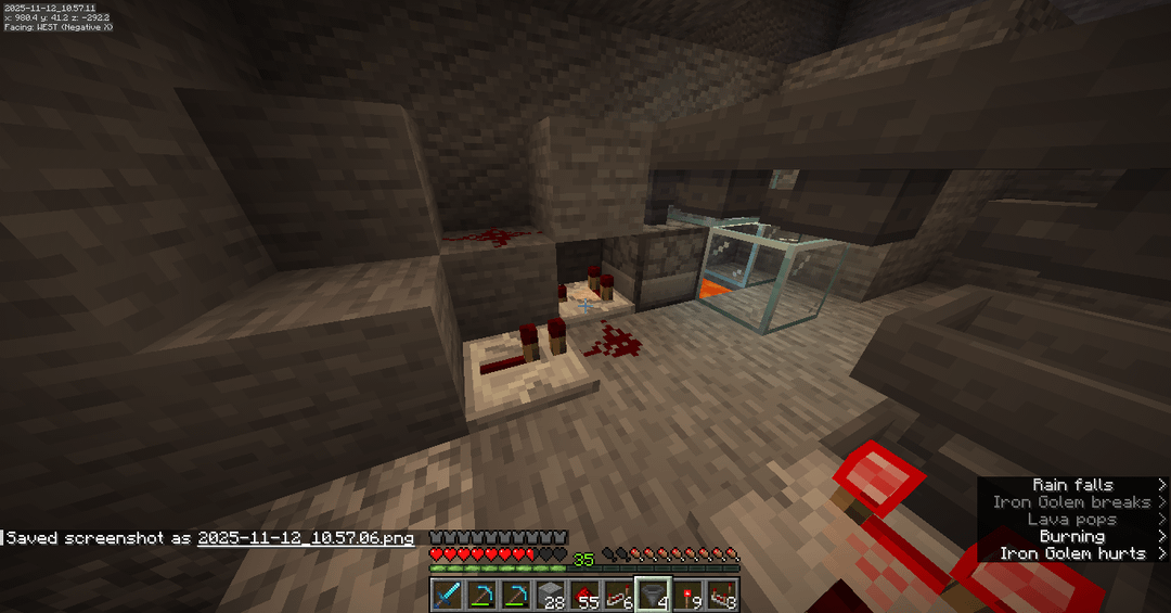 Hi! this is my first time doing any redstone in Minecraft. I've been following tutorials to make a filter for my iron farm so that iron gets to a chest and any poppy goes to a dropper and then lava.