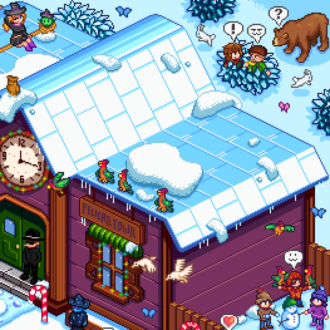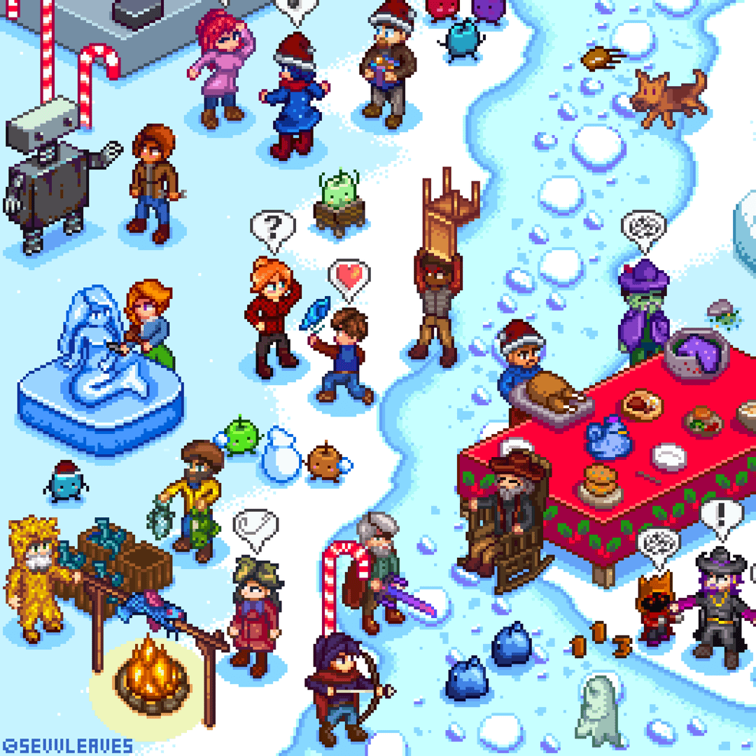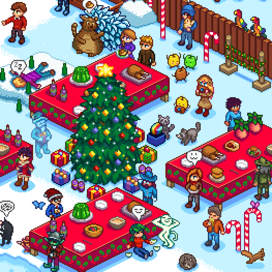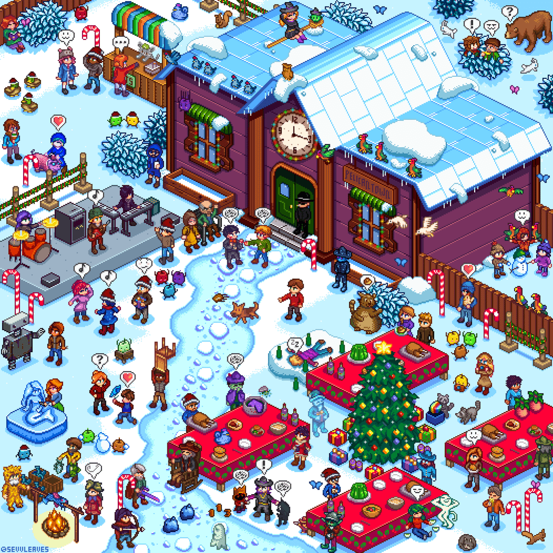 Hello, this is the pixel art I made for Christmas last year, featuring almost all the characters from the game, including mods like SDV Expanded.