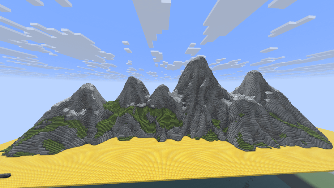 If anyone’s curious, the gradient I use for this mountain is: Light gray concrete powder, light gray wool, andesite, stone, tuff, pale moss, acacia wood, pale oak wood, cobbled deepslate, basalt, smooth basalt. I believe that’s correct and in that order