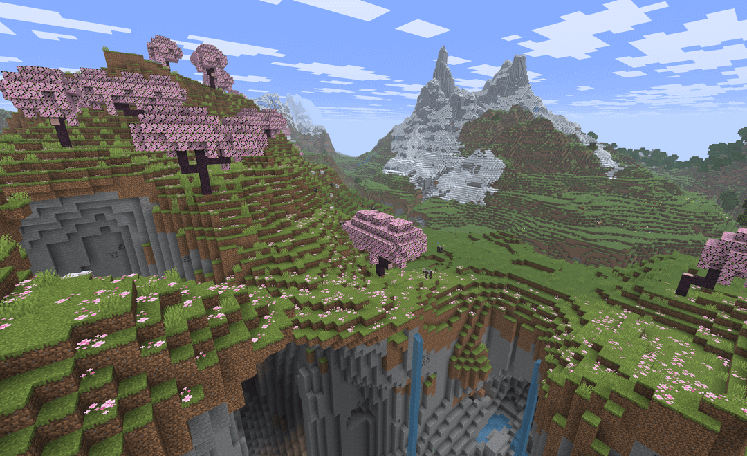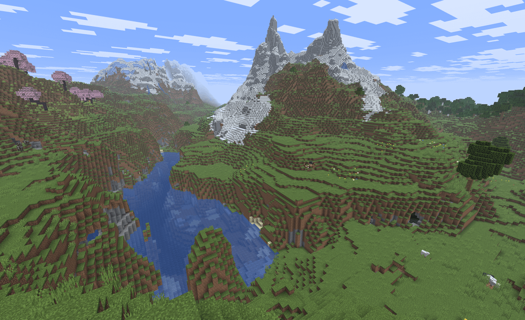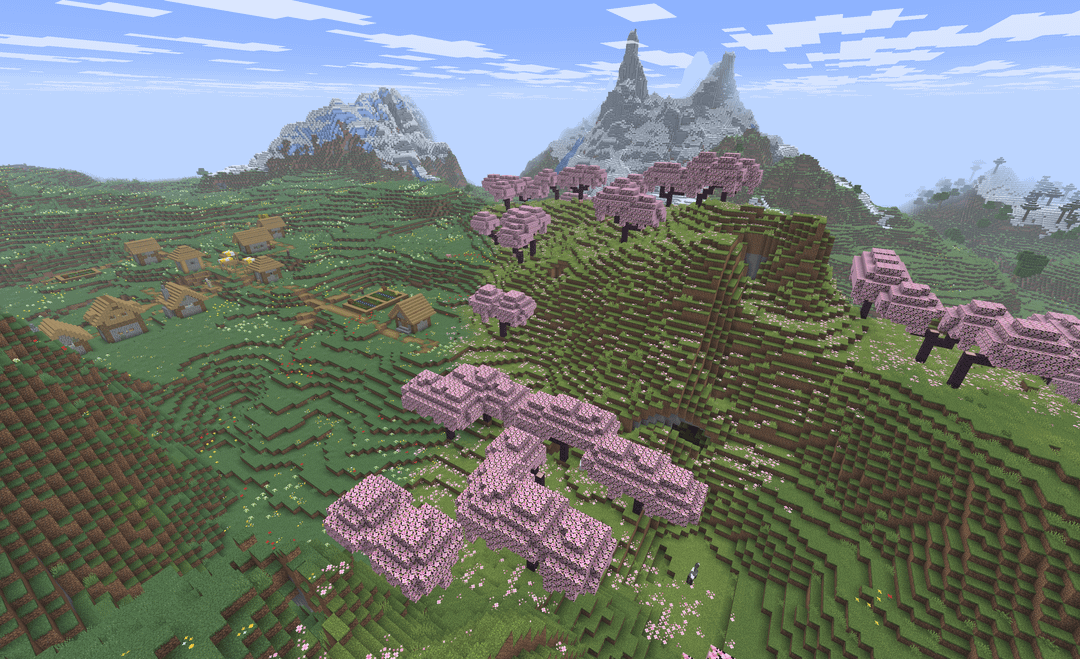 Seed 5806623806662434020 as seen in JE 1.21.10. Screenshot #1 taken at 165 146 479. Very interesting terrain, two villages, huge sinkhole, some forest and taiga close by. by SoloExperiencer Minecraft Minecraft Seeds