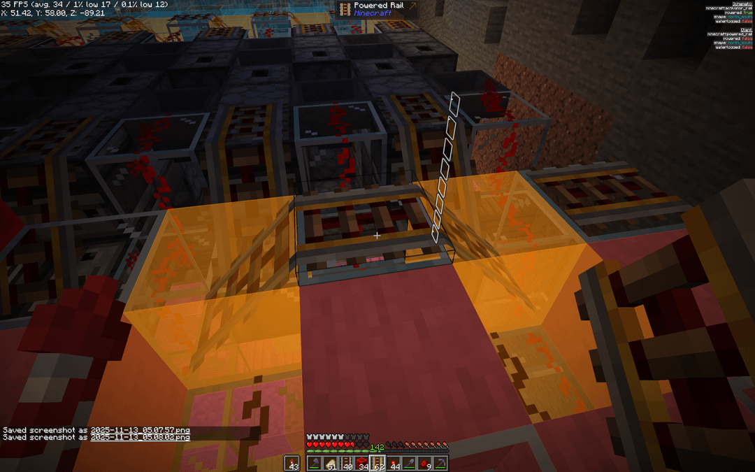 They should all be going towards the left but when i put a rail in the middle they connect together by Neither_Pen9565 Minecraft Minecraft Redstone Redstone