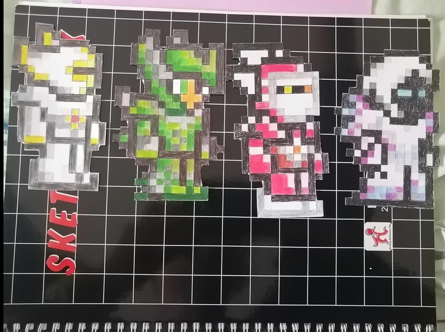 Some Terraria armor set paper pixel art I did when I was younger 😀