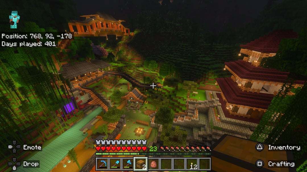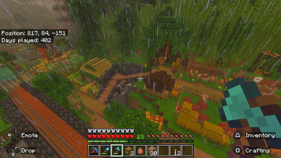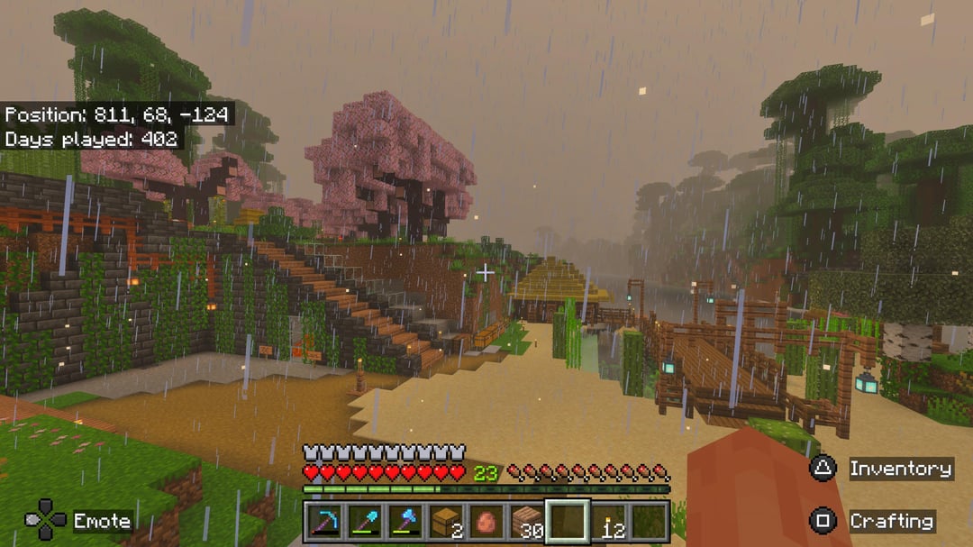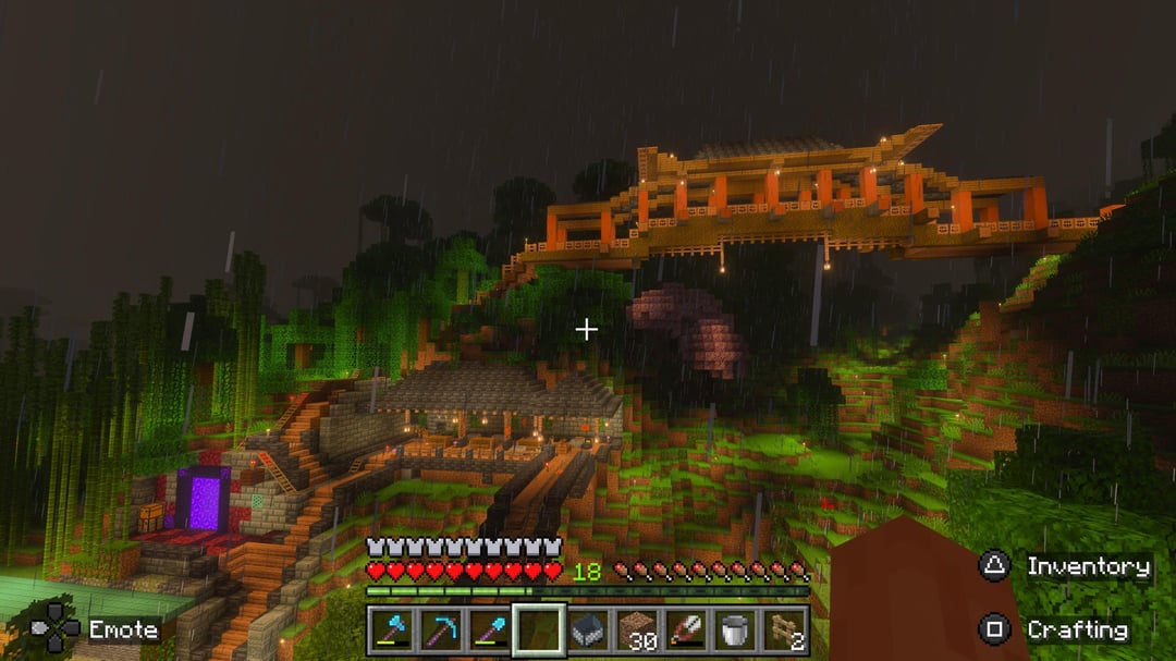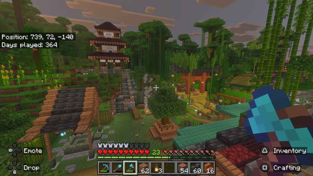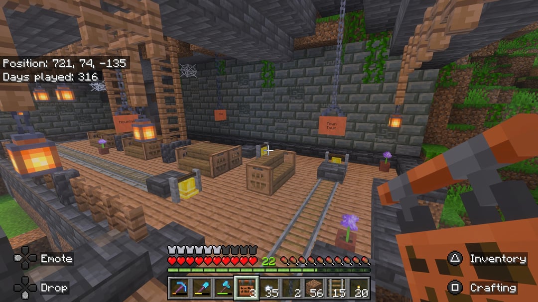 I've not played Minecraft for about 8+ years. I started it up again when I got a PS5 recently. Began with a small crafting area around a pond, after reaching this gorgeous area from my starting point, that was a mountain lake, completely secluded from the rest of the map (not pictured here). And I just started building more and more around it until I ended up with this! I have a functional train station with minecarts travelling to each area of my map, and a tour that shows you all the hard work I've put in around the camp. I'm super happy with it and almost can't believe it's become such a vast little build. Any advice welcome!