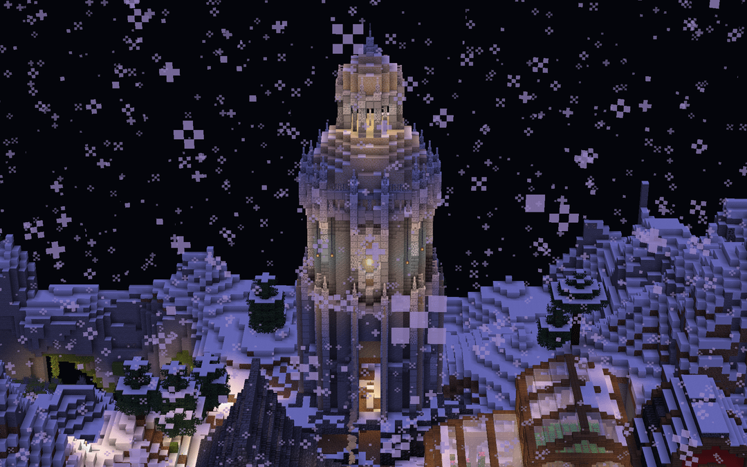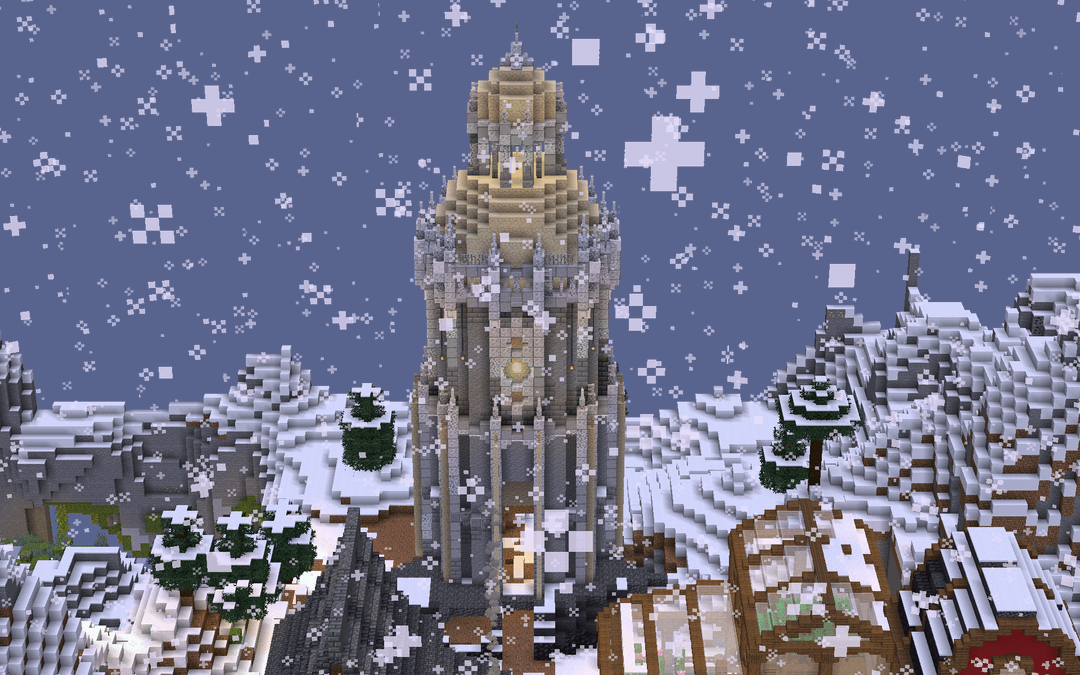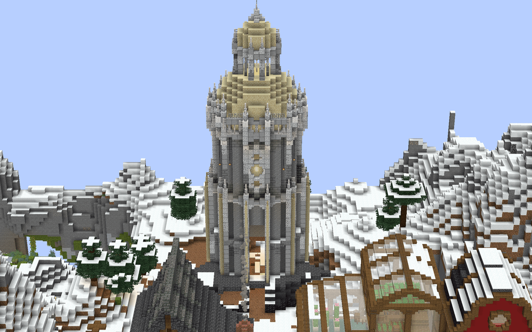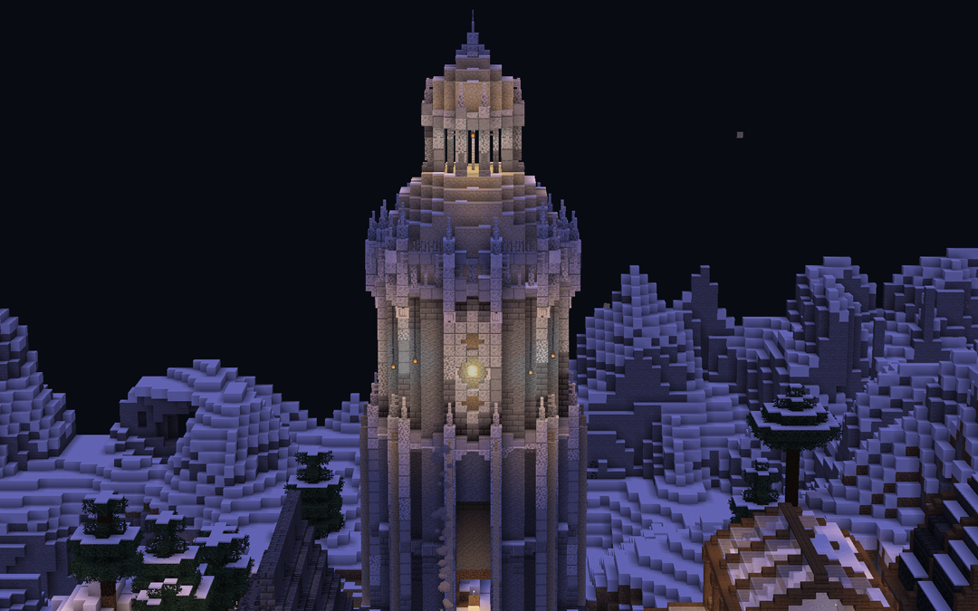 I built this tower on a survival realm, the main colorful block is sandstone, with a gradient of stone bricks, andesite, smooth stone, diorite, polished diorite (and some deepslate bricks). The idea is heavily inspired by another user on this community. You can easily find that post by searching "nameless tower" or scouring u/JackBorn11.