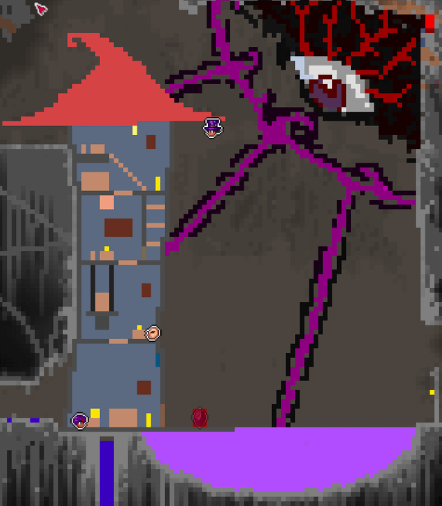 It's supposed to look like an Outer God (the eye) trying to infiltrate the world, but is being held back by a magical barrier being cast by magic people in a tower.