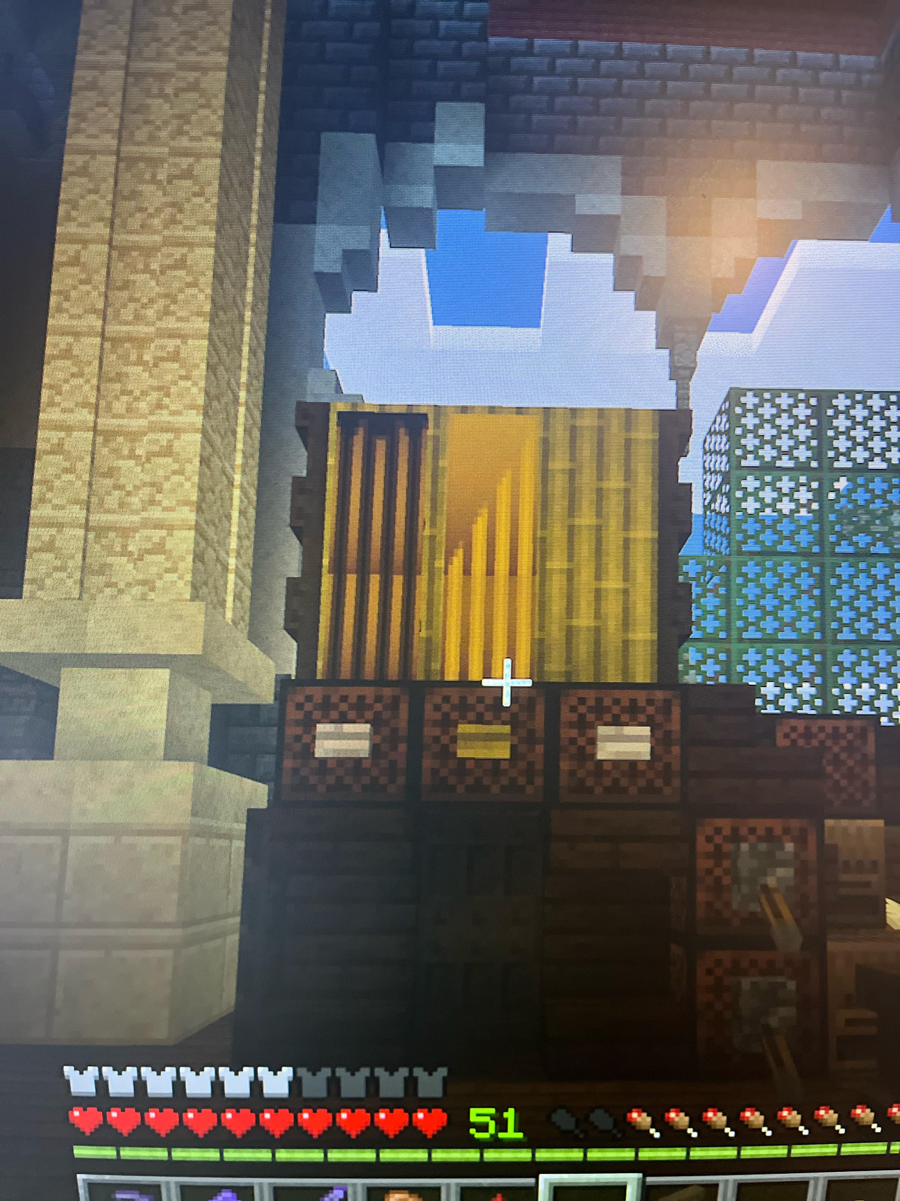 So Im building a pipe organ at the rear of my cathedral. Using banners and bamboo for the pipes on this part. Which banner color and topper should i use? Both are interchangeable. Any help would be greatly appreciated! by Famous_Time612 DetailCraft Minecraft