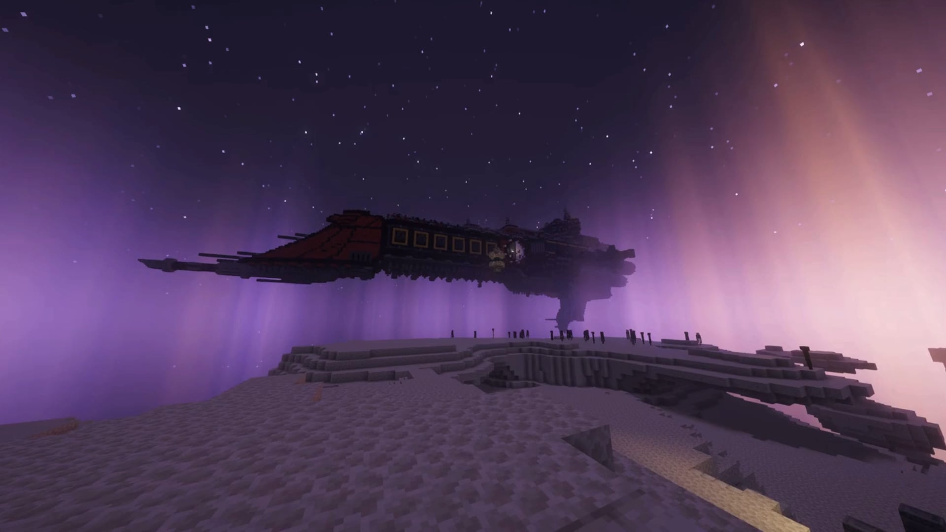 After 2 seconds, another command block ports you on the ship, and the FOV is reset to normal.