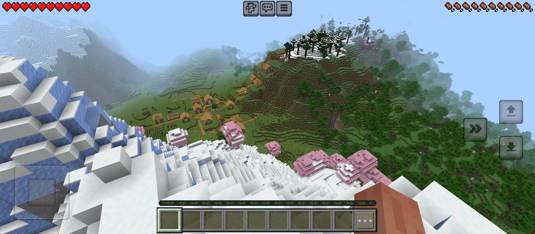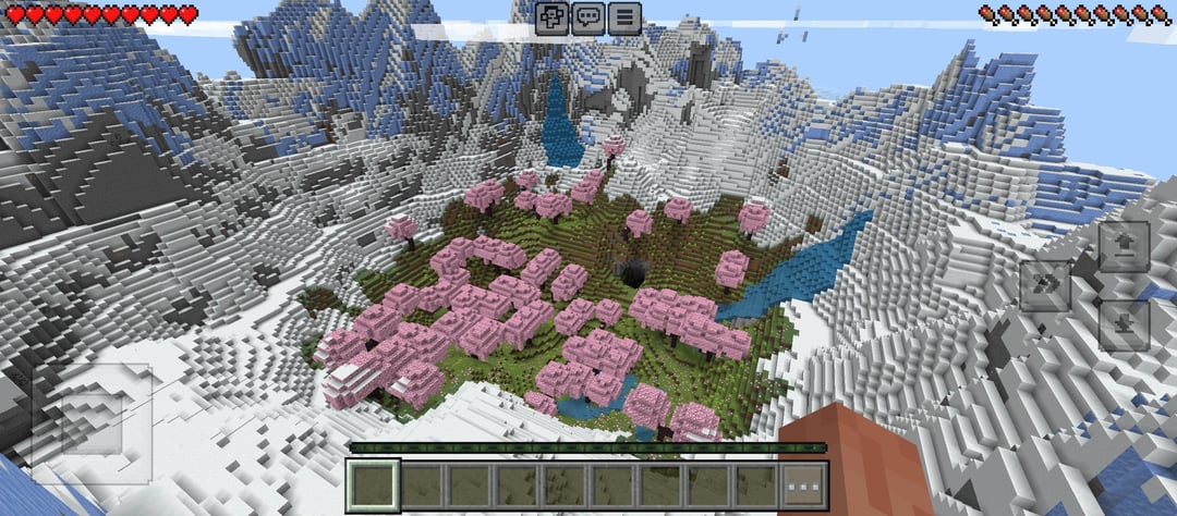 I Just Created A World And I Found This Seed With A Mountain Surrounding A Sakura Biome At The Center And There Is A Village Nearby Seed At The 3rd Image