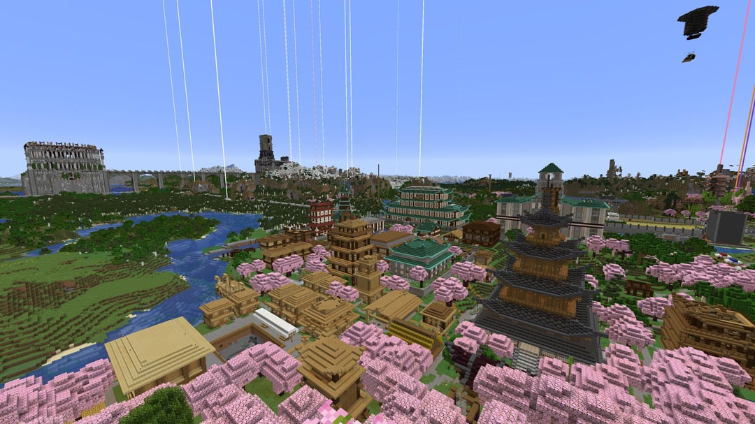 I wanted to show off the progress on the mega server that my friend u/Clue_Hunterx and I have been working on for the past year and a half. My builds are the ones that are directly in front and you can see his in the background. Most builds are unique (the big temple closest is a tutorial build: https://www.youtube.com/watch?v=A7jn4cWCeMQ), I am not sure about my friends in the distance.