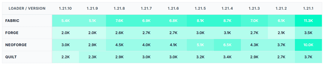 Ive always wanted something to see how popular a certain version + modloader is, so ive decided to make one myself using existing data.