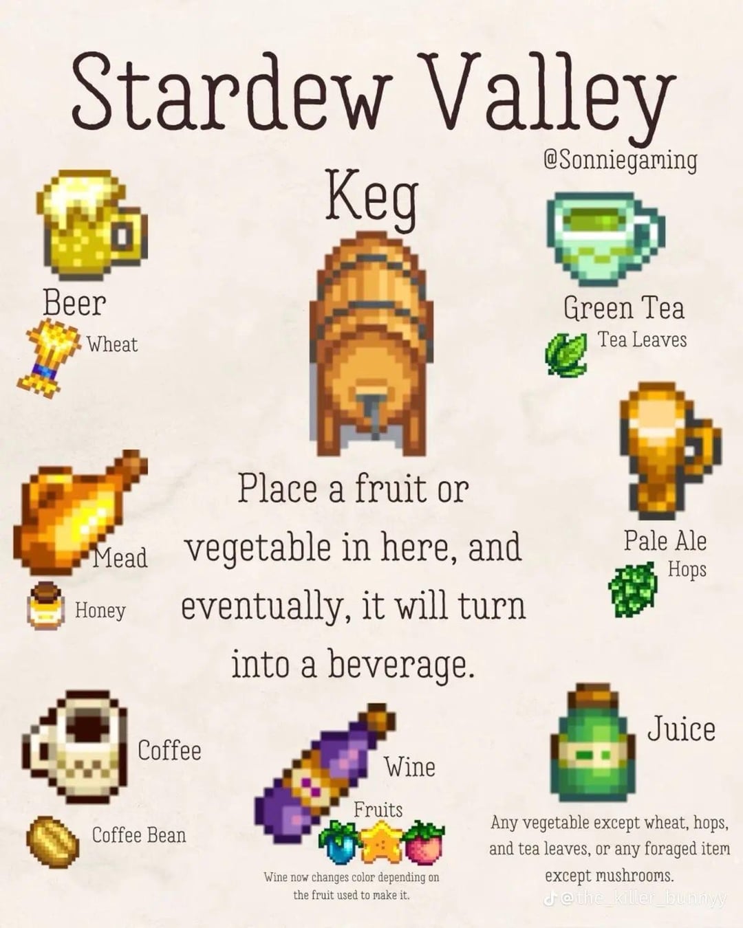 Also worth noting that later, you can put a certain tropical root into a keg for a luck boosting drink that stacks with food buffs.