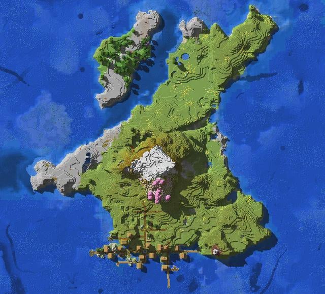 I'm doing a Minecraft event and I'm looking for a specific seed. I would like a large island, ~4000×4000 with world-spawn in the center and enough ocean surrounding it so that I can set the square world border and not have any land sticking out from other continents. I want as much of the island to be snowy biomes as possible, but ultimately variety for both biomes and structures is preferred.
