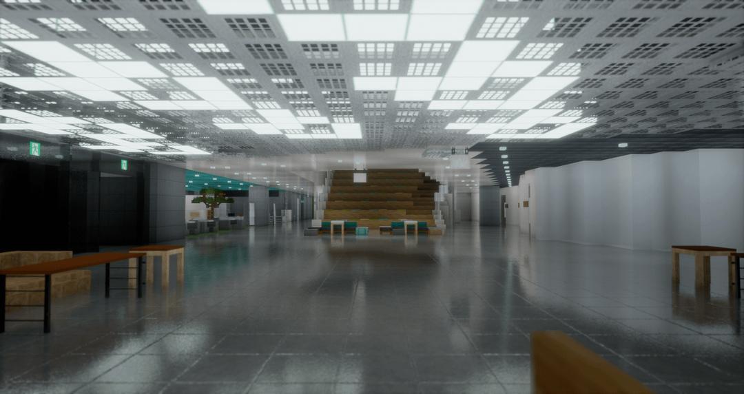 Major buildings have been fully recreated with interiors, and the map even includes functioning elevators and a controllable drone, both made entirely with commands.