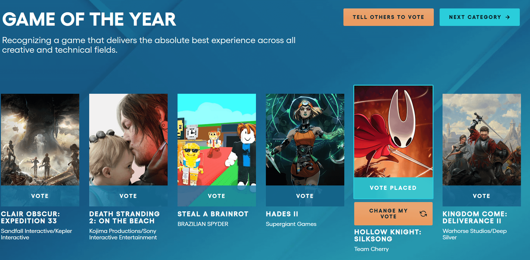 i wouldve went with expedition 33 but i havent played it so i went with silksong. what do yall think? by Few-Carpet2095 ROBLOX