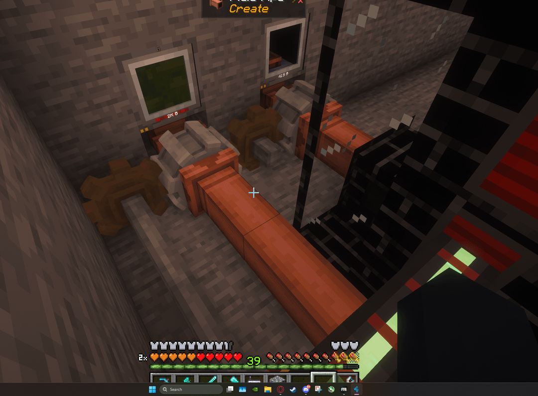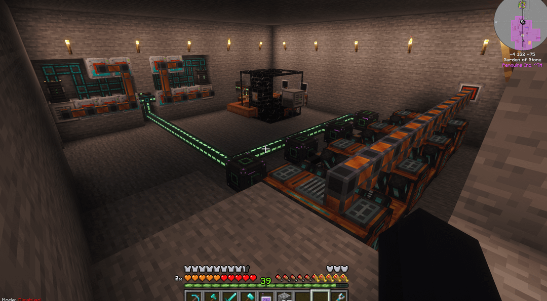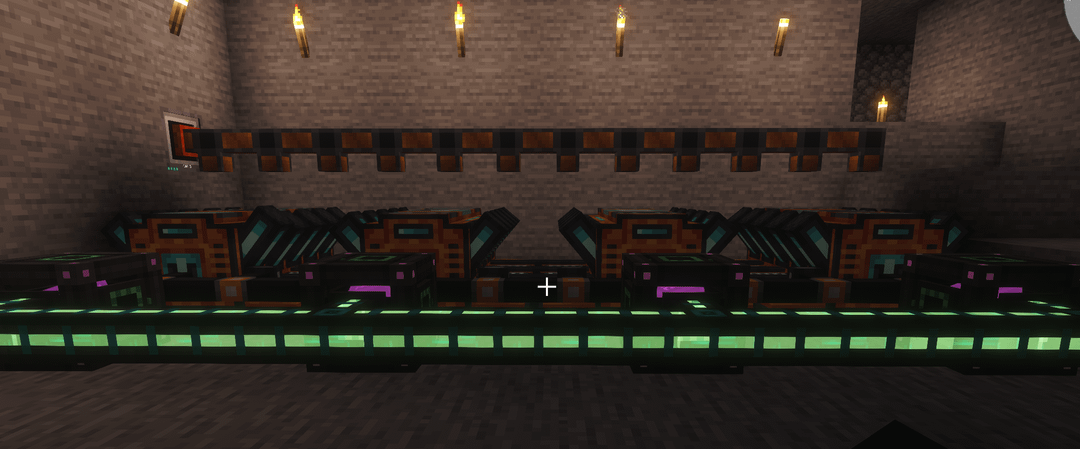 • 8x Enderic Lasers from Oritech mining 2 Budding Amethyst for infinite Fluxite. – 4x Cloche from Immersive Engineering for infinite Pumpkin (You need to trash the seeds to prevent clogging, I am pumping only the seeds into a trashcan)