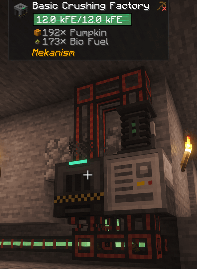 • 1x Crushing Factory from Mekanism with 2 speed upgrades to create Biofuel from the Pumpkins