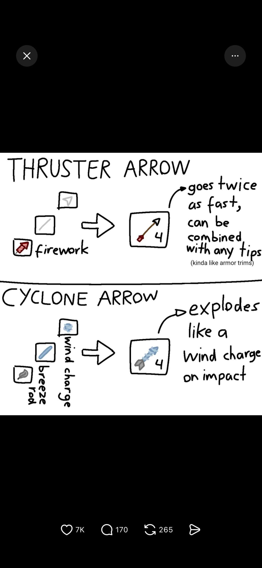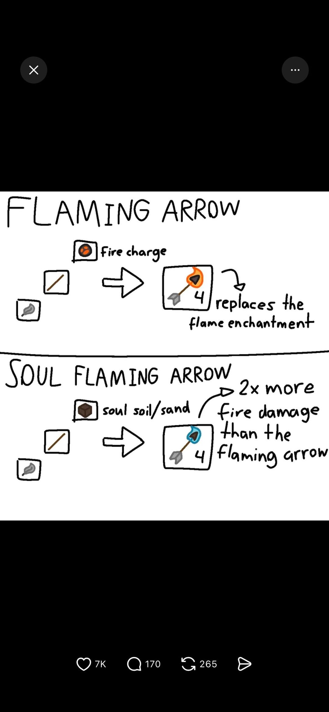 I like all of these ideas but soul flaming arrows shouldn’t do more damage than flaming arrows. A large number of fire charges is harder to come by than that of soul soil/sand.