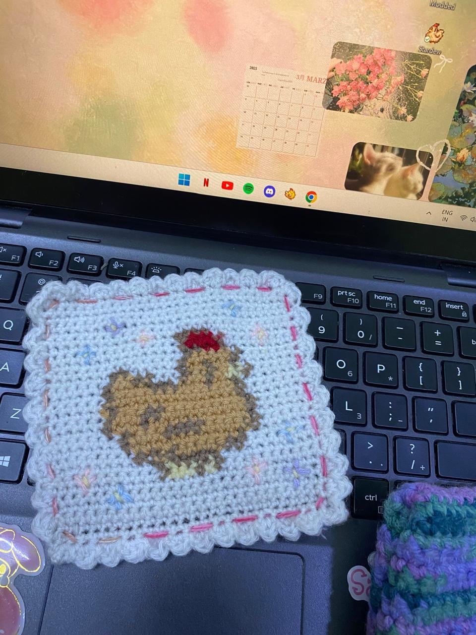 I wanted to share a project I made for my boyfriend's birthday a little while back! He's absolutely obsessed with the game (especially his chickens), so I decided to crochet him a small patch of the iconic logo.