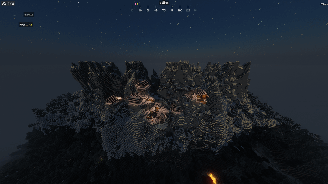This taiga village generated near the world height limit in a jagged peaks biome with extreme changes in elevation. Not to mention the bottom of one house was cut off leaving its bed and chest exposed(last image).