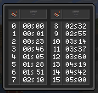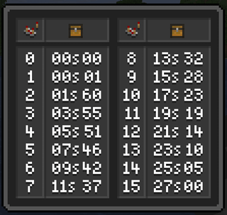 Thanks for the quick replies. The "s" is for stacks of items, not time in Seconds.