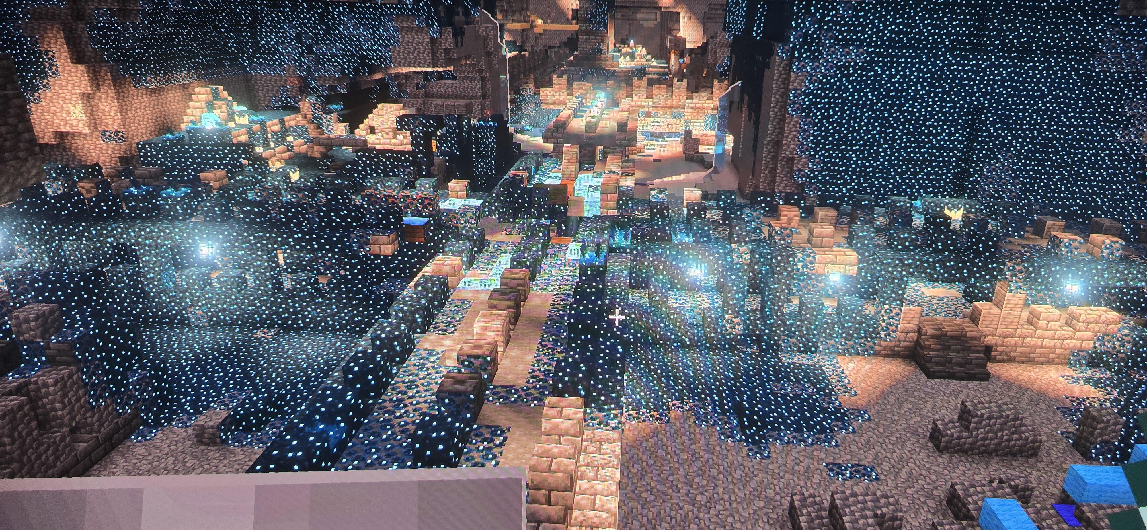 An ancient city from the wild update(1.9). The warden, a powerful mob can spawn here from shriekers which summon the warden if you are too loud. There can be good loot there though if you’re careful.