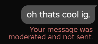 Keksincbutreddit on November 24, 2025 11:33 am The Roblox AI moderation Tags *ig* in Chat too… WHY EVEN TAGGING THE WHOLE MESSAGE AND NOT JUST THE WORD?