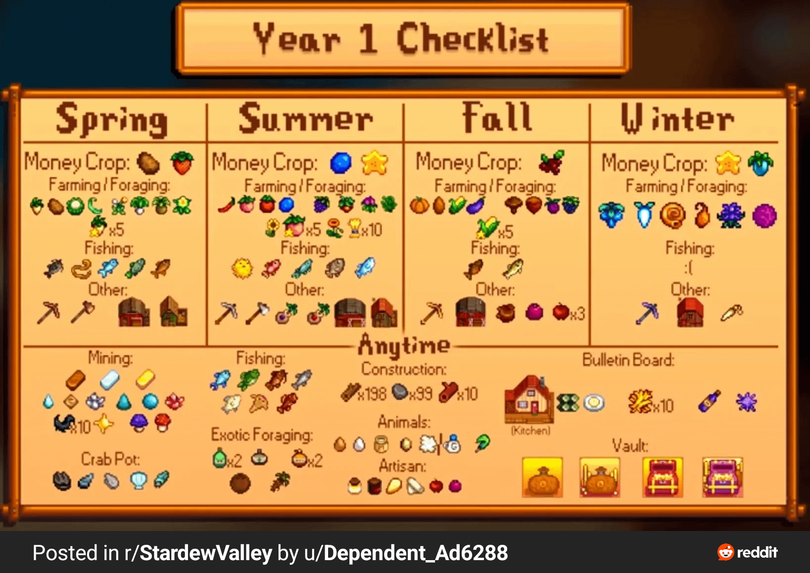 Oh man I have never finished the community center in year one, it’s technically possible but the game was not designed that way, you need a red cabbage that you can’t even get the seed for until summer year 2 right? I know some people will stalk the forest cart for those but it’s such a pain to do so. And I am terrible at fishing, I always forget at least one seasonal fish and still need it in year 2. There is absolutely no reason to rush the game unless that is your preferred play style.