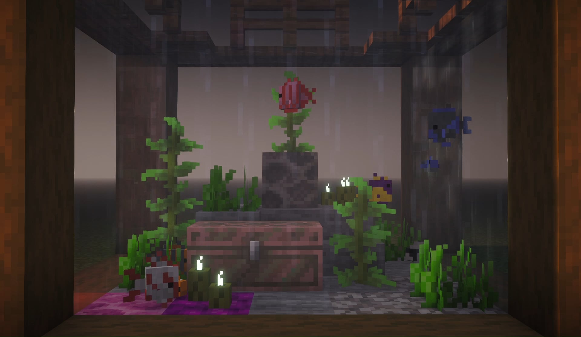 Hiding a copper golem underwater for an aquarium chest