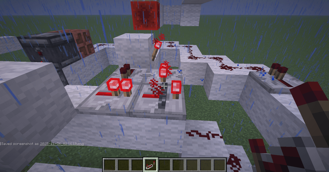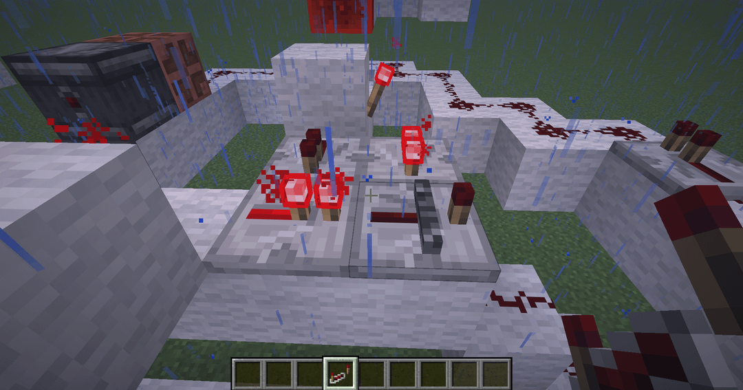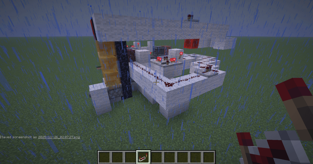 I'm trying to make a device that lights or breaks a nether portal with the press of a button depending on an on/off switch, but the switch is broken. One of the repeaters stays on when it shouldn't, and I can figure out why. Hope someone can help.