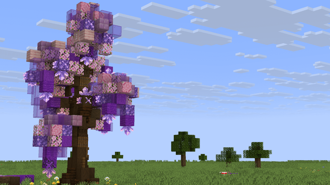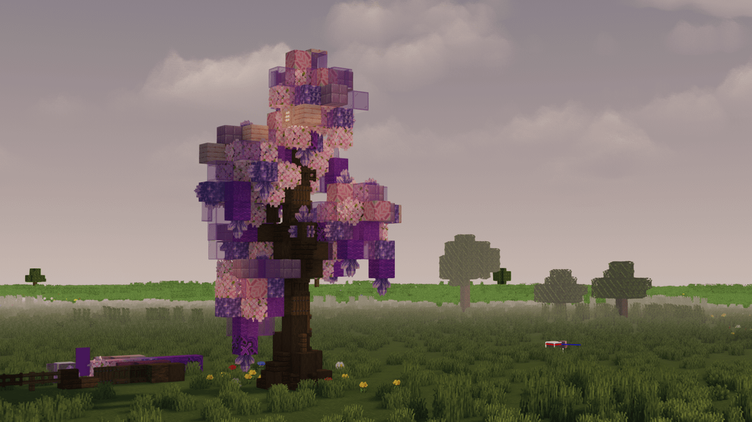 I posted maple, now magical, I saw someone suggest new wood type that would be purple so i thought I will try building purple leaf tree The idea of the tree by: u/dilophosauris by General-Net-8072 DetailCraft Minecraft