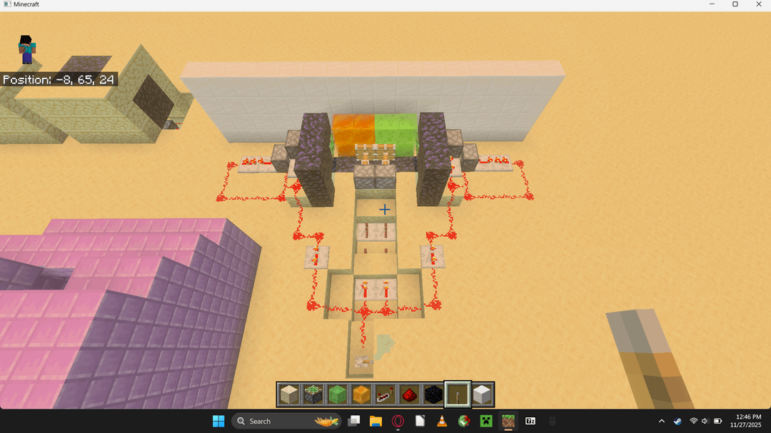 I didn't wake up this morning and think: Yeah, let's do a flush sliding door. But here I am, having made a 4×2 flush sliding door. With proper wiring, the redstone can all be hidden away from sight. And with a bit of effort, it could go to 4×4. And since it's a symmetrical design, it can be made into a 2×2 as well.