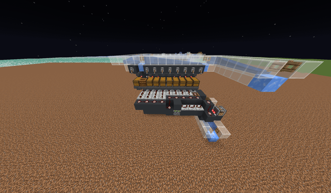 so i did a auto crafter for all craft in the game , you have filter on top so you can input item whit the water above, and the crafter item go out whit the water under.