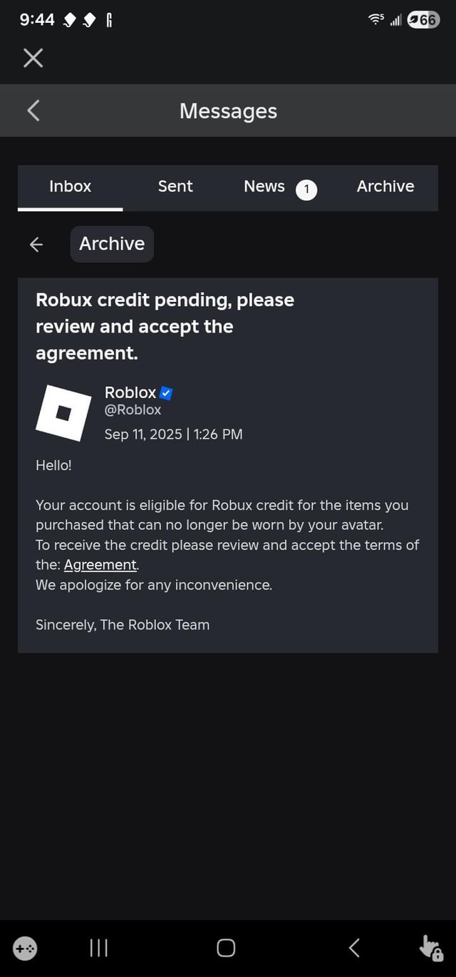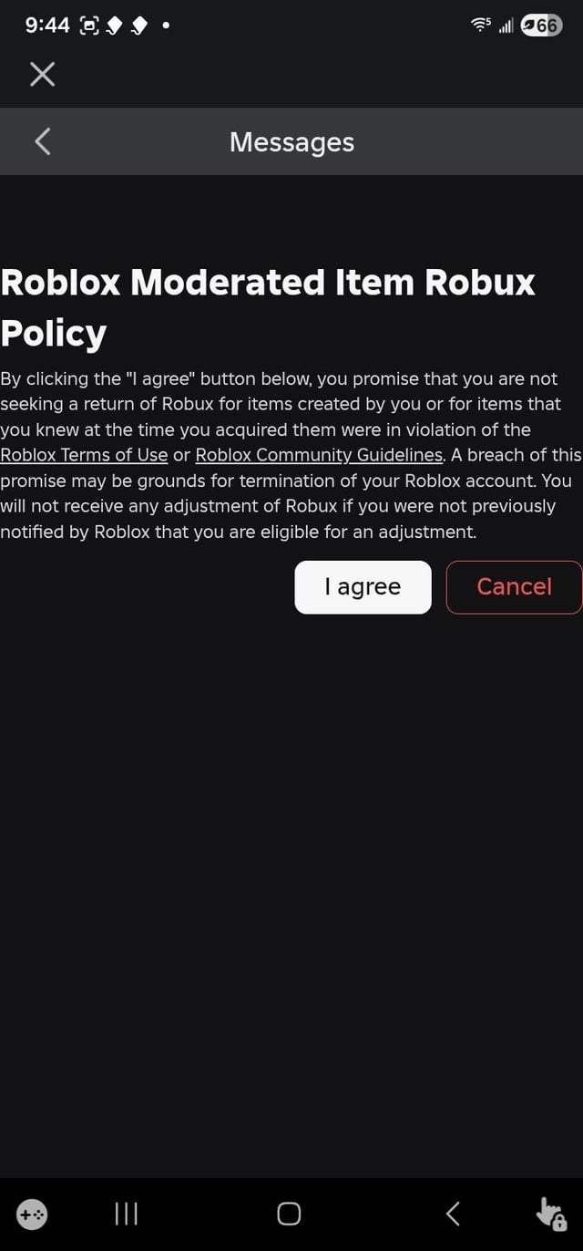 one of your roblox items/ bought clothing got deleted and theyre just giving you your robux back
