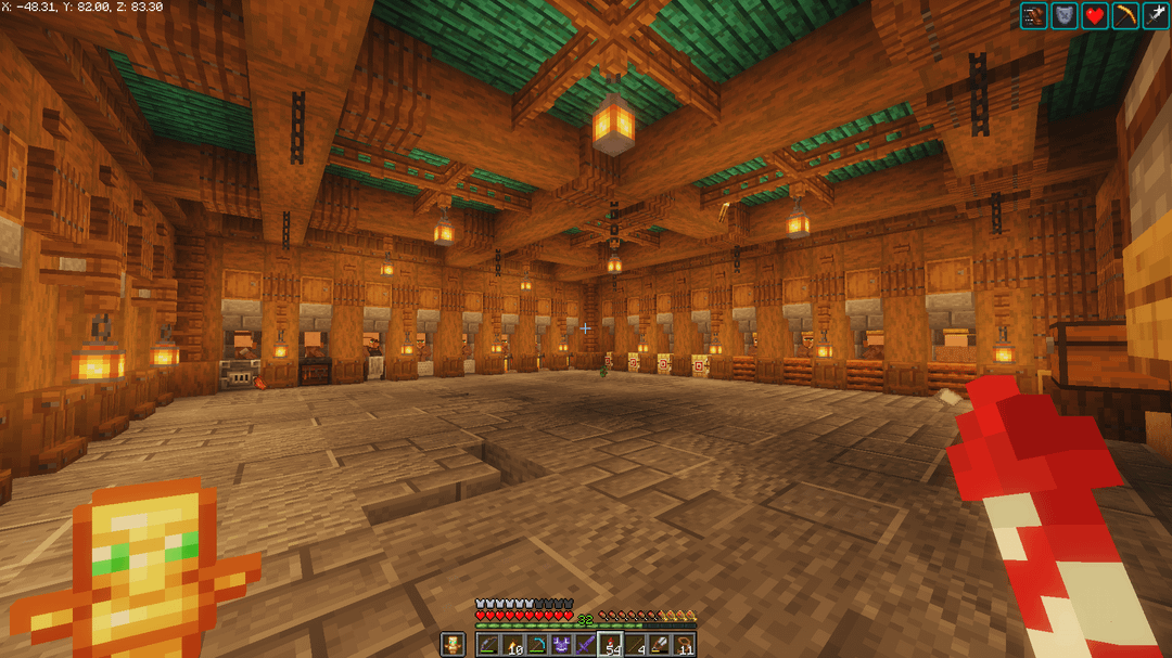 I agree with the other commenter that adding more might make it look busy, but I also see how you might feel like there is too much spruce. I think you should add some deepslate behind the villagers. It’s subtle yet it breaks up the colour scheme a little.