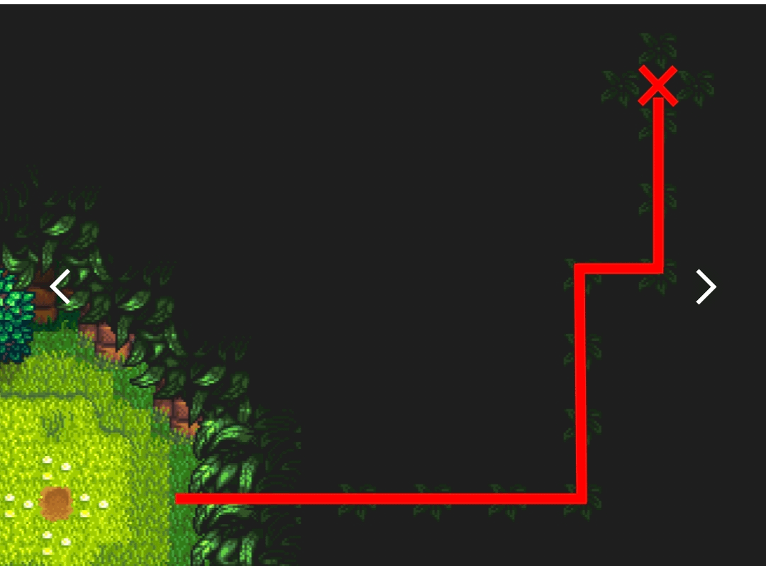 Basically just follow the pattern even if you can’t see where you are. What I mean is, go right as far as you can, then up as far as you can and so on and so forth. Even if it looks like you aren’t going anywhere. Once you have followed all the directions, you should be able to just click and get it. You can always check your location by using your fishing rod or hoe, anything that can charge essentially.