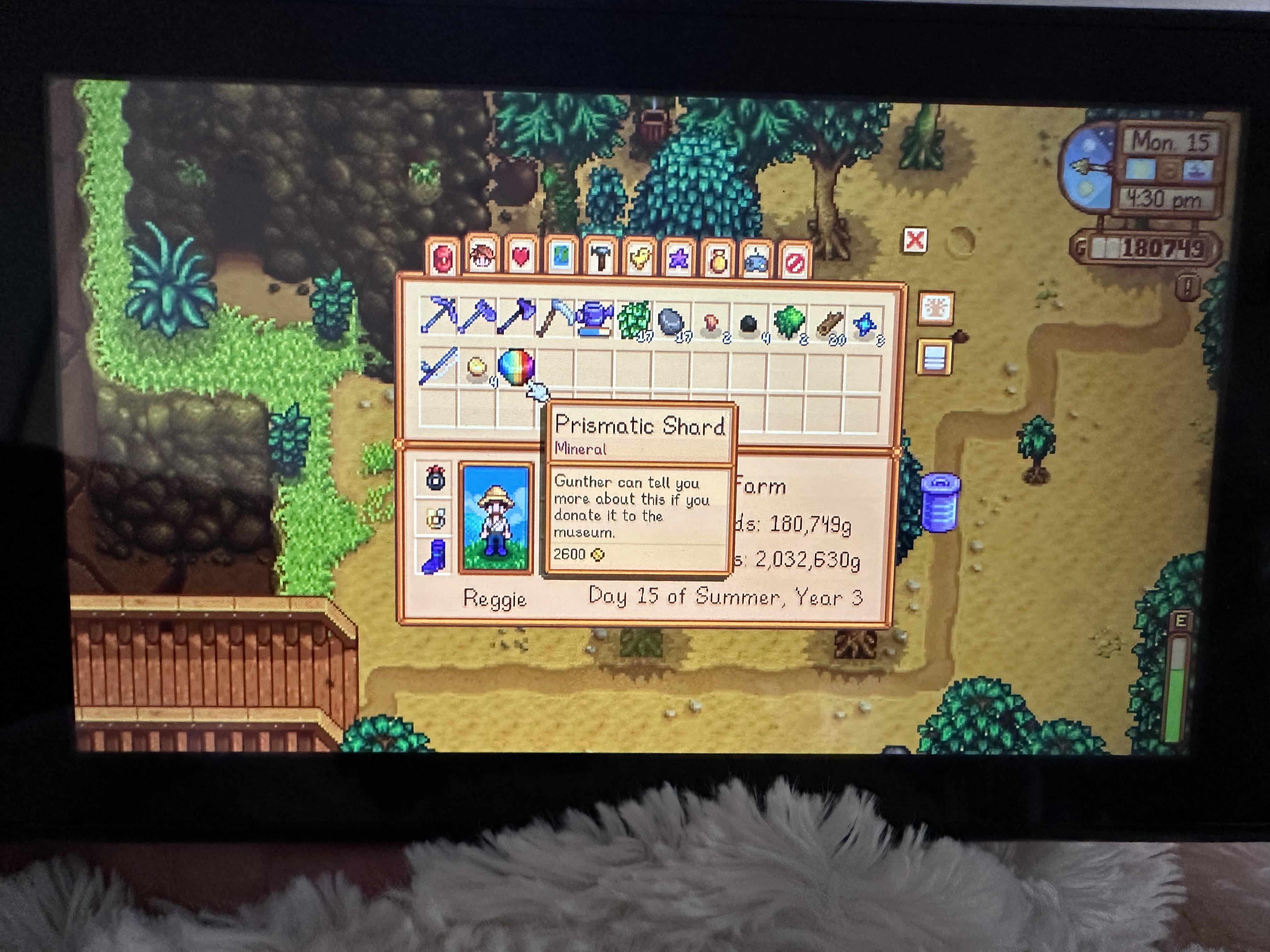 This is my second game, Year 3! My son and I were playing and we went to the Quarry, smashed a swirl blue rock and BAM 💥 PRISMATIC SHARD 🥹 by HopefulNothing8701 Stardew Valley
